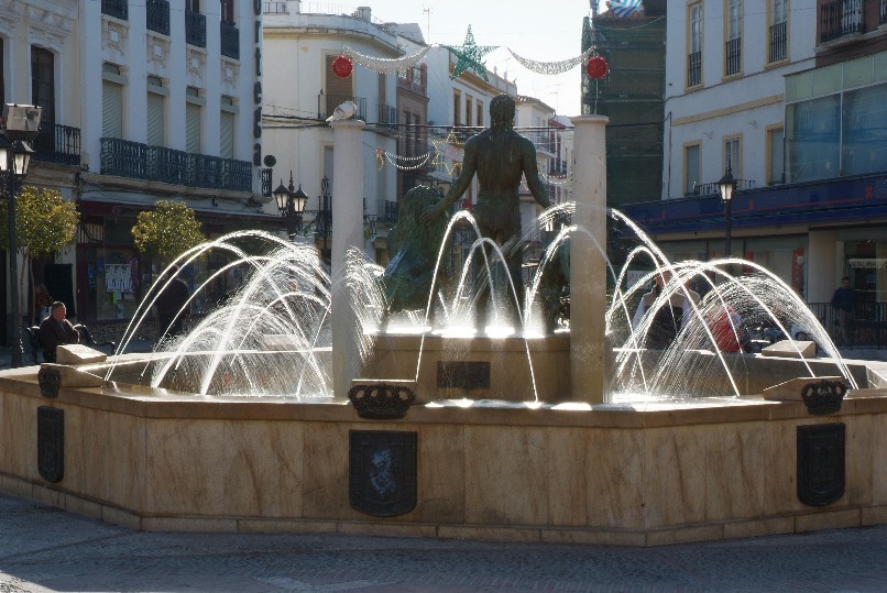 Escudos de Andalucía en el monumento a Hércules de Ronda