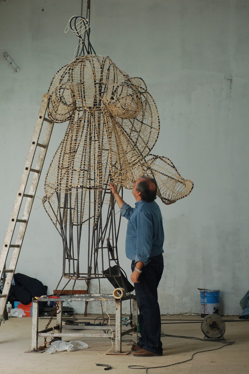 En primer lugar, se realiza una estructura de acero que servirá de soporte al barro con el que modelaremos la obra.